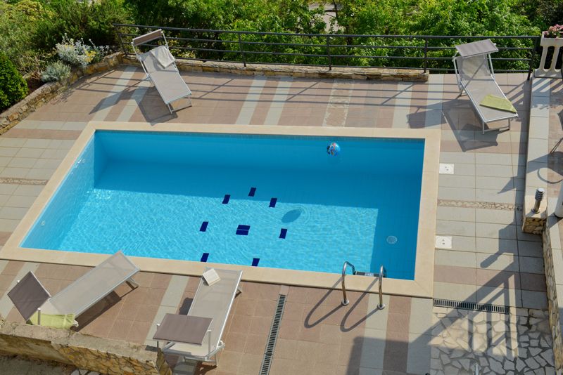 Fully furnished holiday home with 4 bedrooms and a swimming pool, suitable for 8 persons, at only 300 m from the sea.